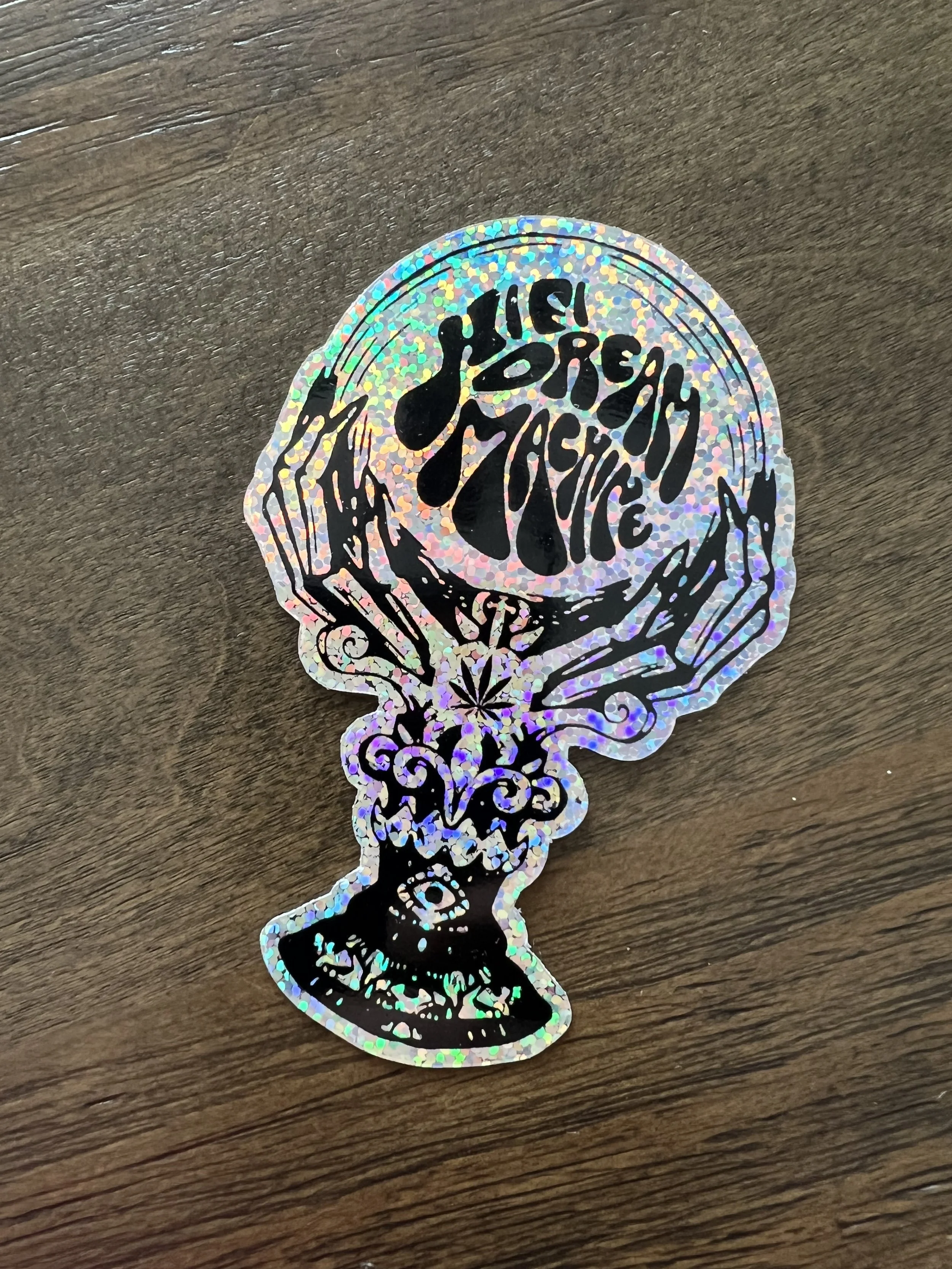 ‘Look into the reflection is this mirrored crystal ball sticker to find out your hard rockin' future…..or just how stoned you are at the moment!’